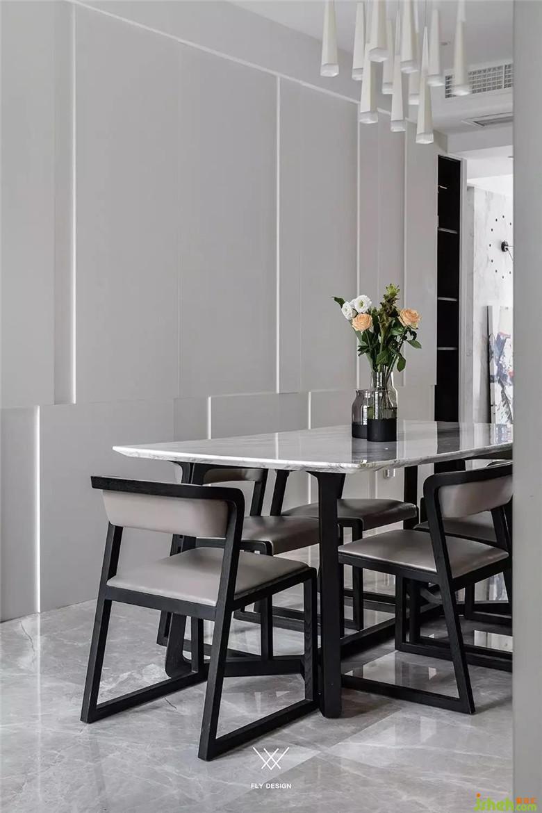 帶著這樣的目的,重新調(diào)整了空間的比例,納原陽臺于客廳區(qū),設(shè)備陽臺于餐廳區(qū)。強調(diào)軸線關(guān)系,是公共空間的延續(xù),讓連接更流暢。