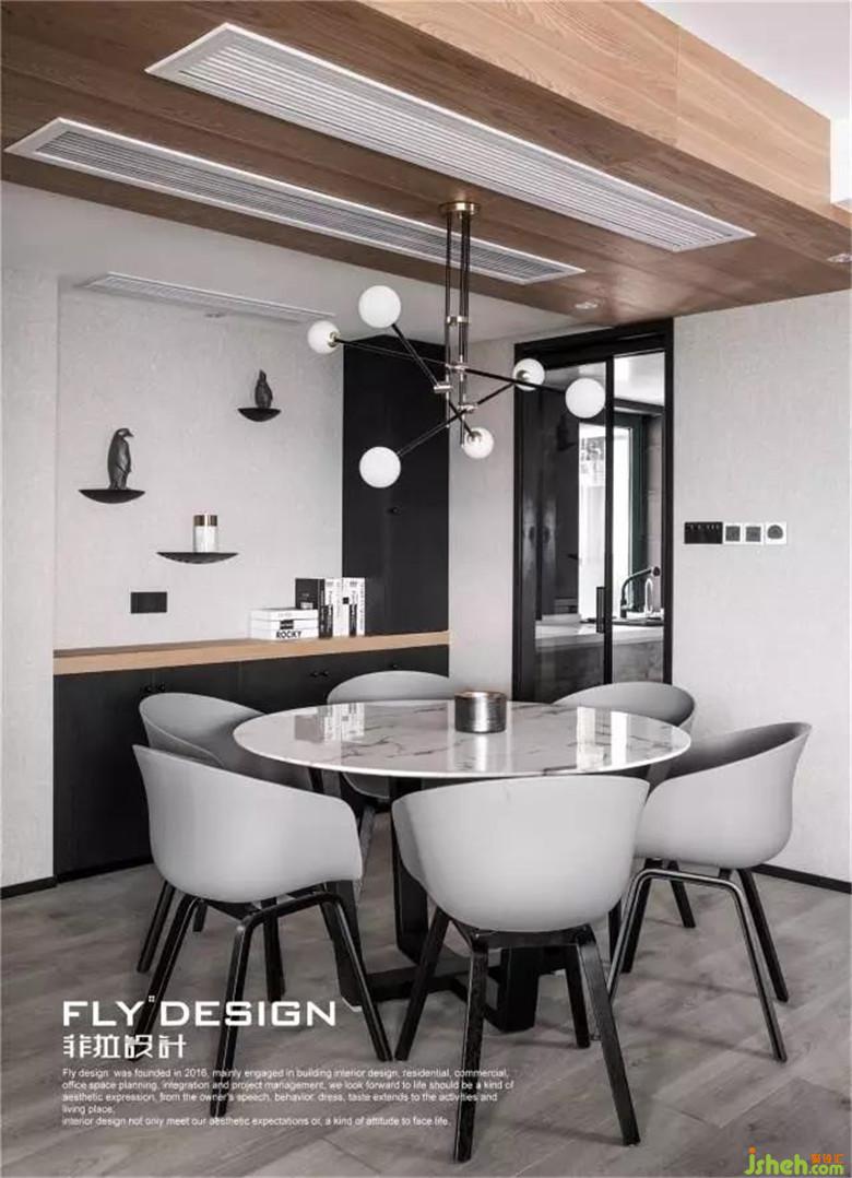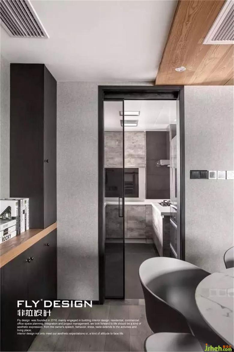 本案在設(shè)計(jì)風(fēng)格定義為臺(tái)式現(xiàn)代風(fēng),空間色調(diào)上以黑白為主調(diào),原木色加以點(diǎn)綴,使整個(gè)空間不至于太壓抑??臻g氛圍精致、沉穩(wěn)卻也不失居家的生活氣息,滿足屋主多樣化的生活需求。