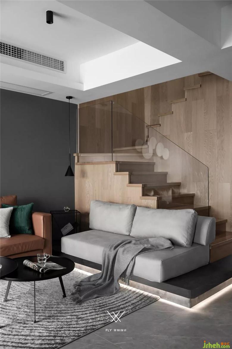 在這套居家空間里,裝修公司的設(shè)計(jì)師在滿足客餐廳公共活動(dòng)空間足夠開(kāi)敞和互動(dòng)性,保證效果的前提下,在很多不起眼的地方做了足夠多的收納空間。比如樓梯下的空間一部分劃分給客廳做雜物間,更多的分給廚房放冰箱,蒸烤箱。