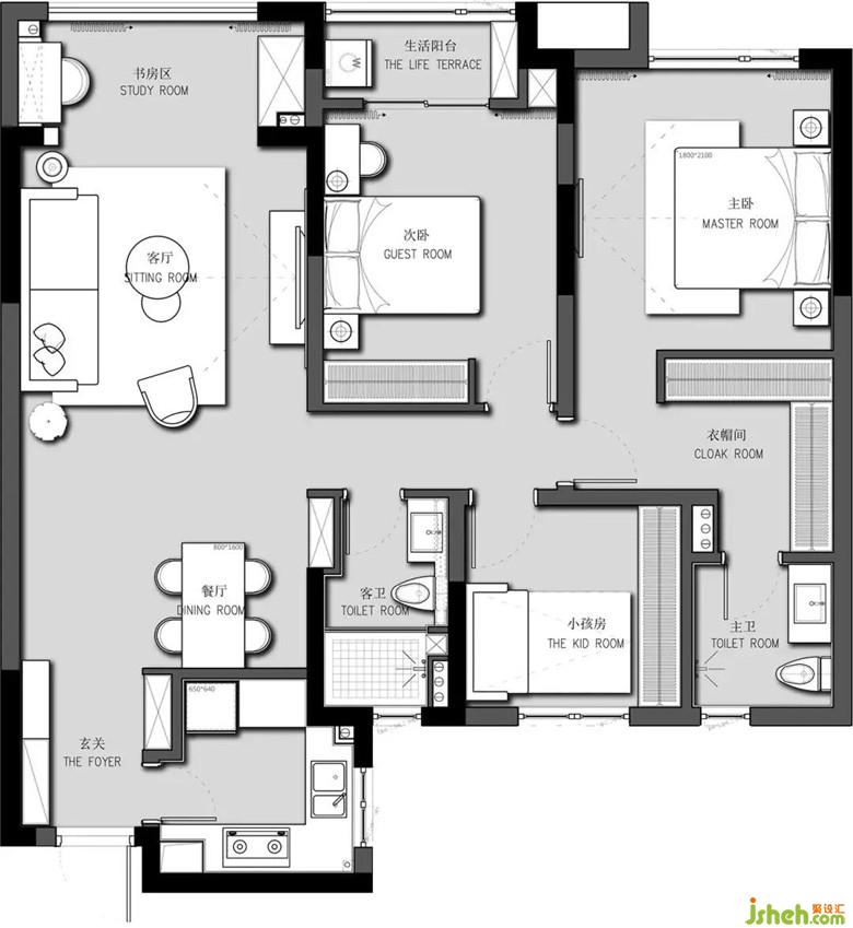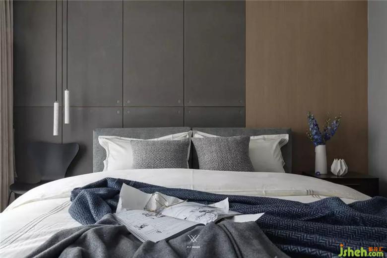 業(yè)主喜歡寬敞的空間,還對木元素情有獨(dú)鐘,裝修公司設(shè)計(jì)師通過各種方式在以灰色為基調(diào)的環(huán)境里加入木元素,比如電視背景墻的飾面板,臥室的床背景,和玄關(guān)處造型巧妙的鞋柜。
