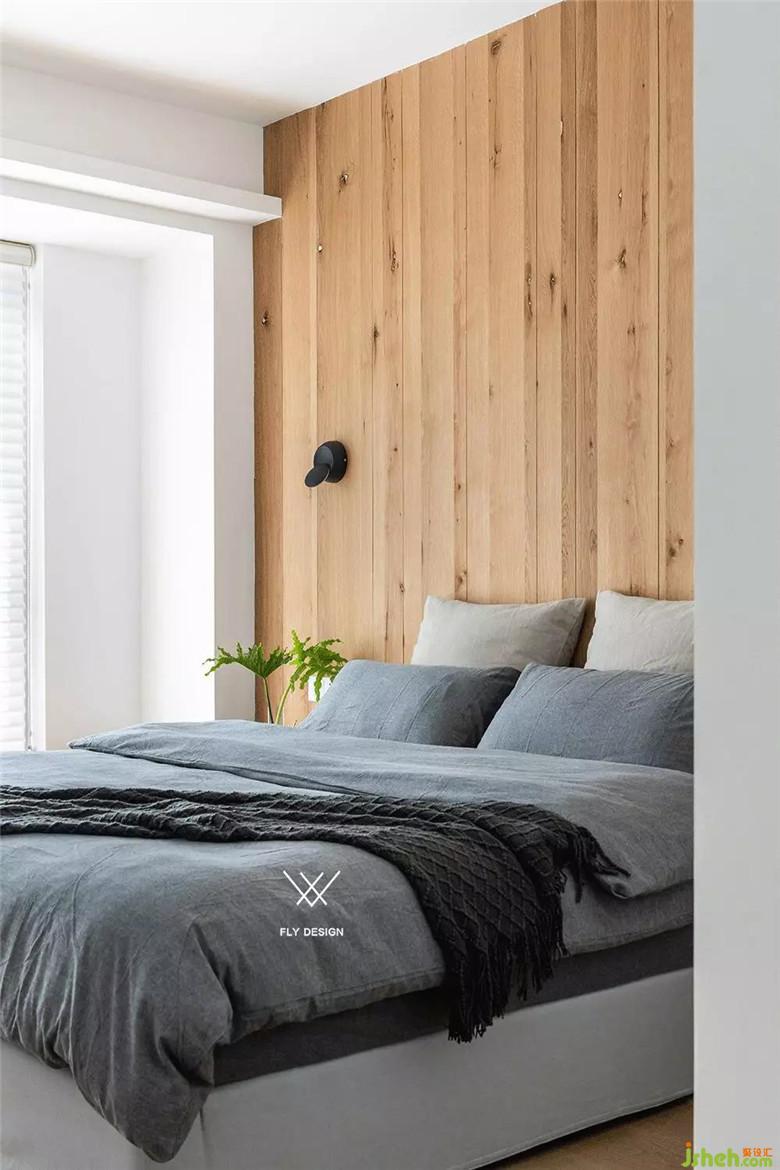 木頭做成的床頭和裝飾畫使屋子酷起來,床頭柜上的擺件與整個空間一起生出流行藝術氛圍。