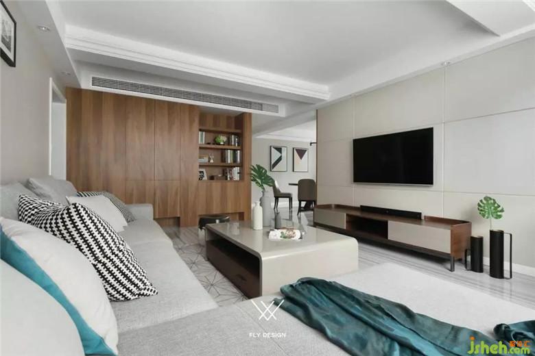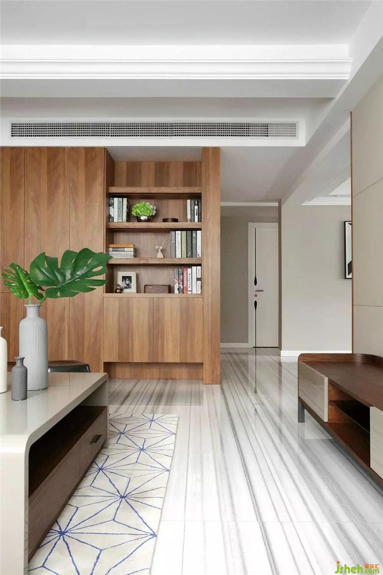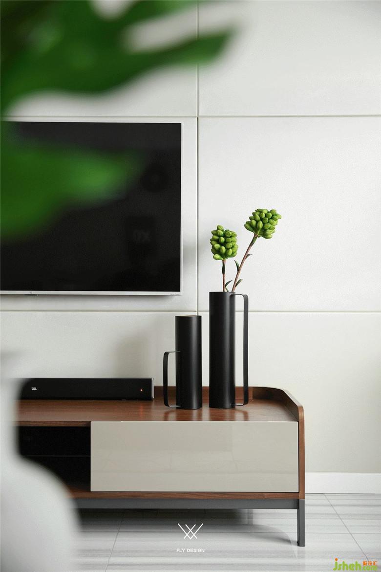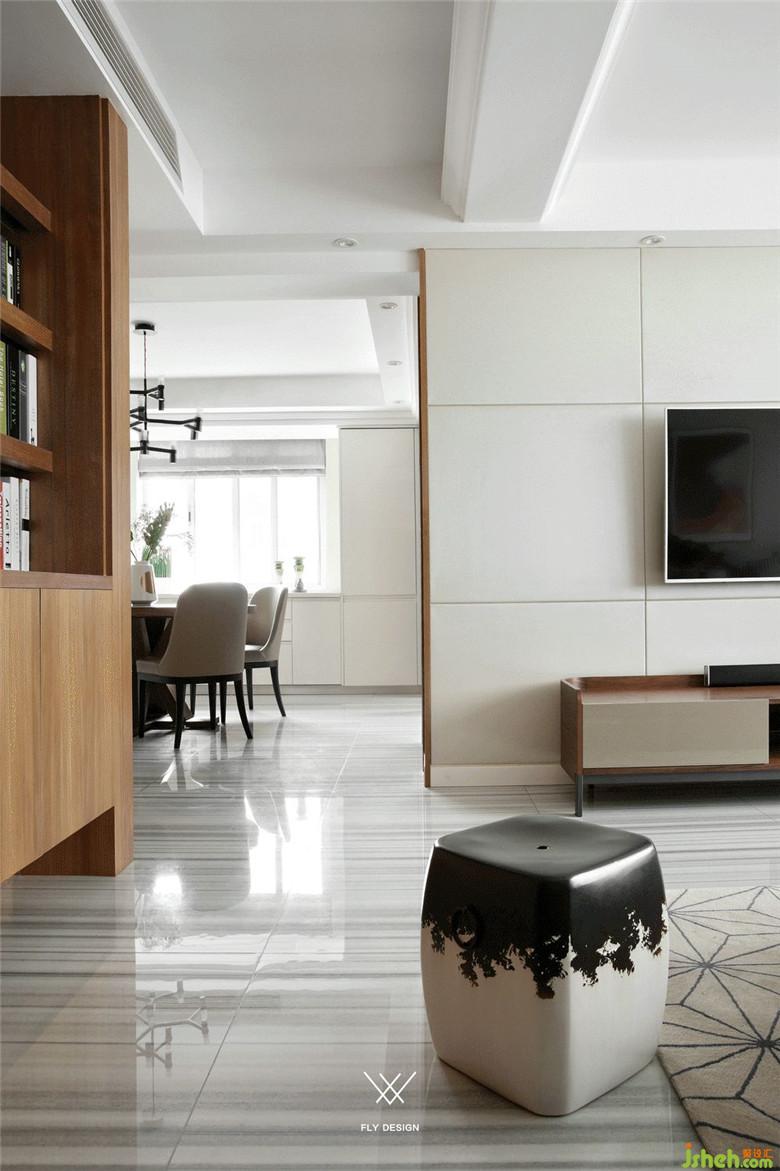 電視背景墻是大塊面的黑白色搭配,裝修公司使客廳強(qiáng)烈的對(duì)比兼具了視覺(jué)效果和實(shí)用性。白色的烤漆柜門(mén)提亮整個(gè)客廳區(qū)域,收納空間也足夠。下方歐式風(fēng)格的柜子將插座隱藏在里面,也可以做路由器或機(jī)頂盒的收納,保證了電視背景墻簡(jiǎn)潔,完整的視覺(jué)效果。沙發(fā)旁的木制書(shū)架,線(xiàn)條簡(jiǎn)約流暢。