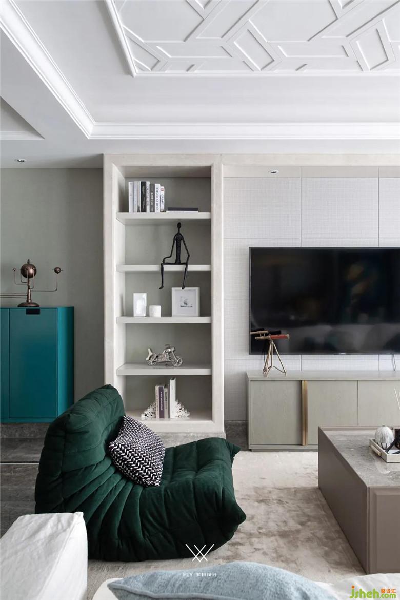 業(yè)主喜歡墨綠、灰綠、灰、金屬等色彩,所以選擇與之相近并融合原本色調(diào),而且裝修公司使用暗橘色來提亮空間。、