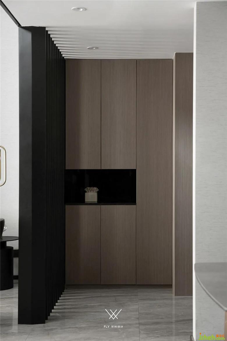異地項目其實會出現(xiàn)很多工藝,材料上的差異。比如入戶玄關的格柵和挑空區(qū)的弧形木作包邊原本打算找整體木作公司工廠生產(chǎn)、現(xiàn)場安裝,但當?shù)啬芴峁﹤€性化定制的廠家太少,最后是由木工師傅現(xiàn)場制作,油漆工現(xiàn)場噴漆來實現(xiàn)。再比如電視柜和沙發(fā)背景的黑邊原本想用黑色鐵板包邊,也是受當?shù)夭牧系南拗啤o法找到成熟的供應商,最終用木飾面加噴漆來實現(xiàn)。在此感謝一下具備匠人精神的木工師傅,包括柜門板、柜體、木格柵、隱形門、電視柜、一層樓梯側(cè)板、二層樓梯在內(nèi)的木作部分都是由木工師傅現(xiàn)場制作。
