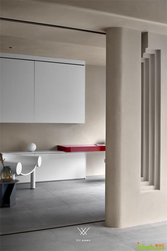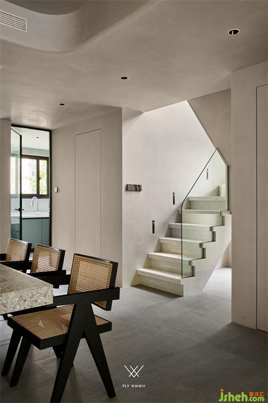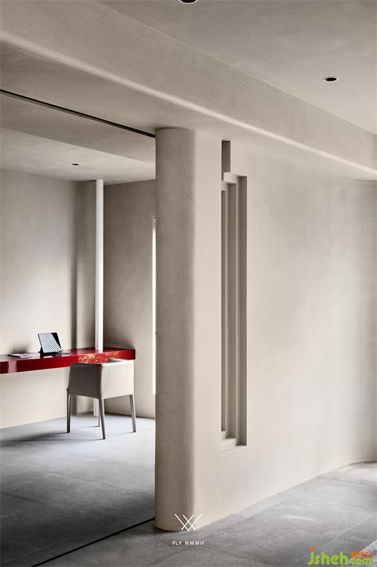 自白立體、結(jié)構(gòu)的交接,書房開放式呈現(xiàn)對話過渡,亦外亦里、亦靜亦動,細部的探究觸及,立面凹凸感、層次與漸進、光的亮度與陰影神秘多變的姿態(tài)創(chuàng)造,材料肌理的表達變化見著于光之中。