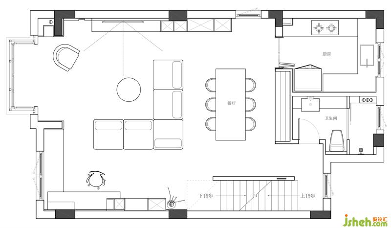 L型沙發(fā)圍合態(tài)勢回應(yīng)不同空間角度的對話與互動,沙發(fā)的重新組合排列,可變量引導家居生活的多種可能。