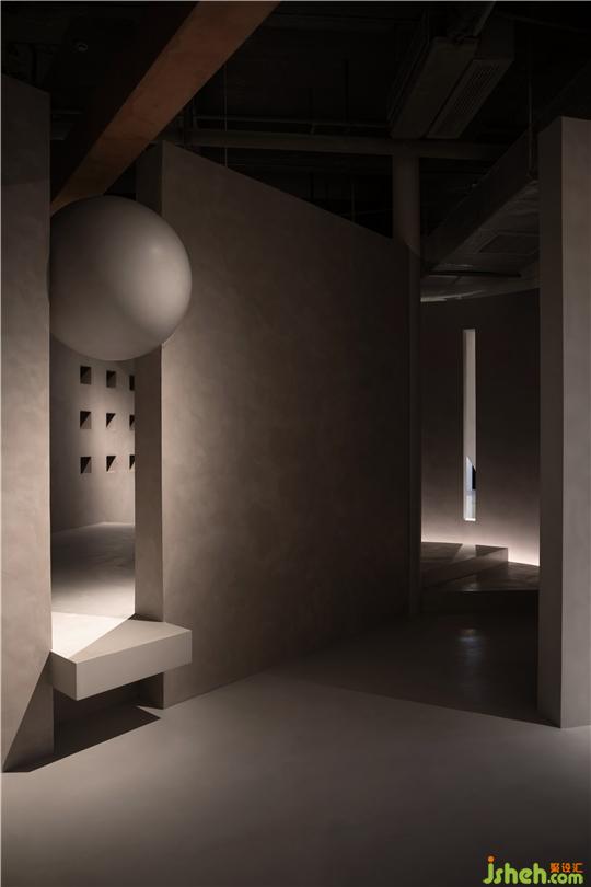 體驗館設計師從抽象派畫家卡西米爾·塞文洛維奇·馬列維奇的幾何畫作中汲取靈感,由二維平面抽離應用于三維空間,架構出展廳結構形態(tài),以具體的幾何形體主導,迂回的動線設計聚焦、強化各區(qū)域感受,結合特定區(qū)域視覺上的懸浮感,打造整個空間不受束縛,離心的動感。由莫蘭迪畫作中提取的色彩應用于空間之內(nèi),莫蘭迪色系所獨有的溫柔,低飽和攜帶的樸素、寧靜,色彩豐盈卻不張揚,玩味空間。以簡單的形式探索,形體、色彩、空間的關系,以不規(guī)則的幾何學形象去呈現(xiàn)。