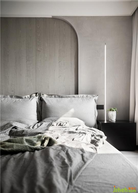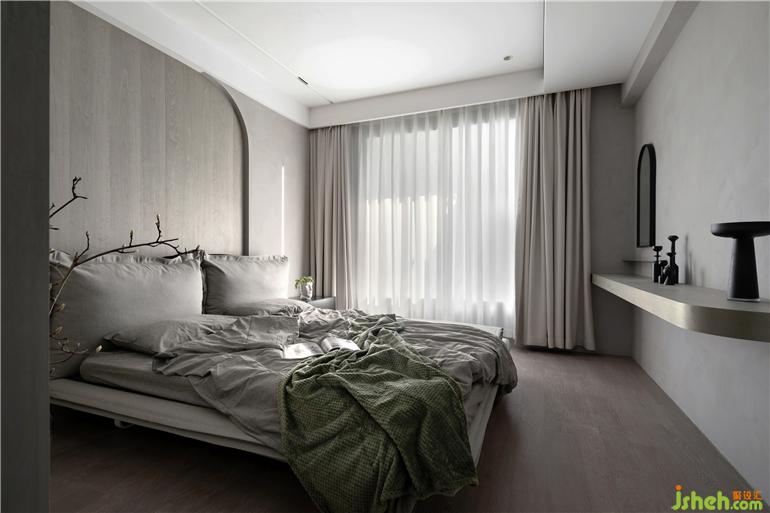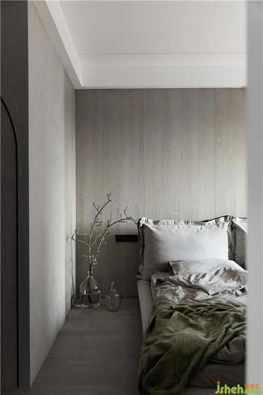 木飾面、棉質(zhì)床品、藝術(shù)涂料等貼近自然的材質(zhì)與色彩,在空間中營造溫潤素凈的面貌。