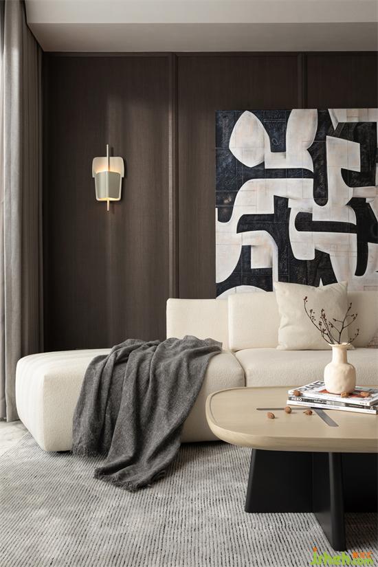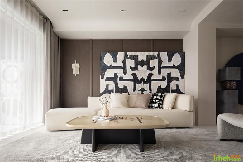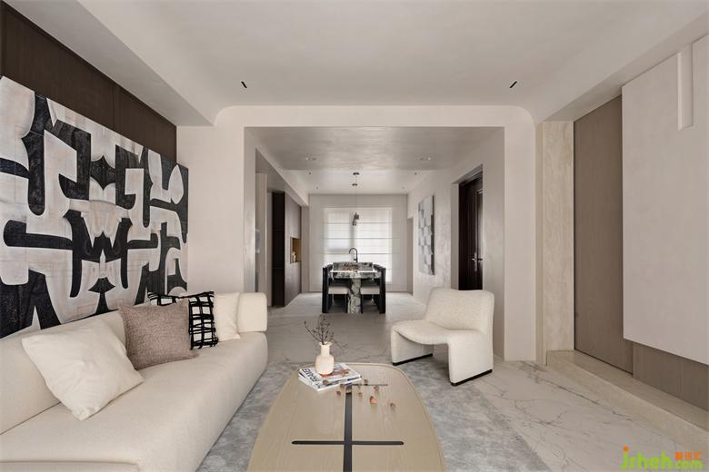 Beige and light grey are the main colors of the space, and some wood and coffee colors are added to enhance the level richness of the visual sense; The symmetry aesthetics is used to optimize the spatial structure and deal with the connection between the blocks.