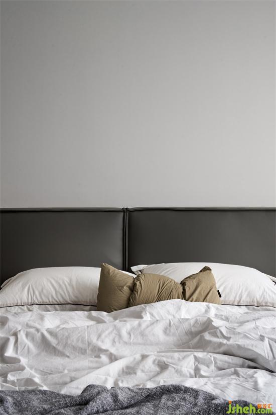 精裝房改造灰調(diào)奶油色搭配黑色皮質(zhì)床體清冷與溫柔的尺度拿捏的恰如其分