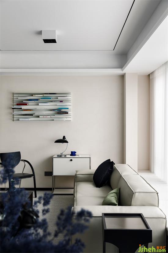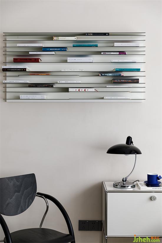 原本北向的臥室改成與客廳連通的書房,房門以玻璃推拉門形式拉近區(qū)域間的互動,一旁內(nèi)嵌柜體作為餐廚區(qū)的收納補充。