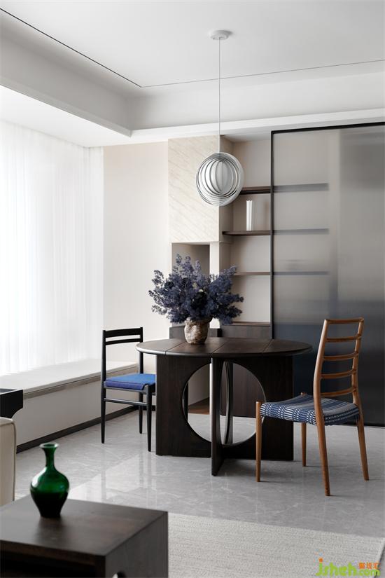 一日三餐的煙火與這醇厚的就餐氛圍,兩人的生活悠然而雅致,各有千秋的餐桌餐椅有著形體的互補,杭州云悅灣精裝房改造章法有致的搭配感受餐廳的意韻迭起。