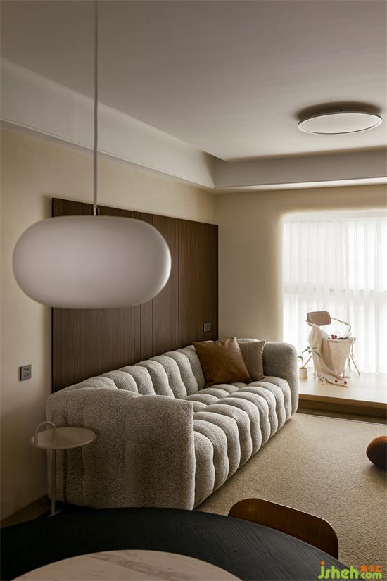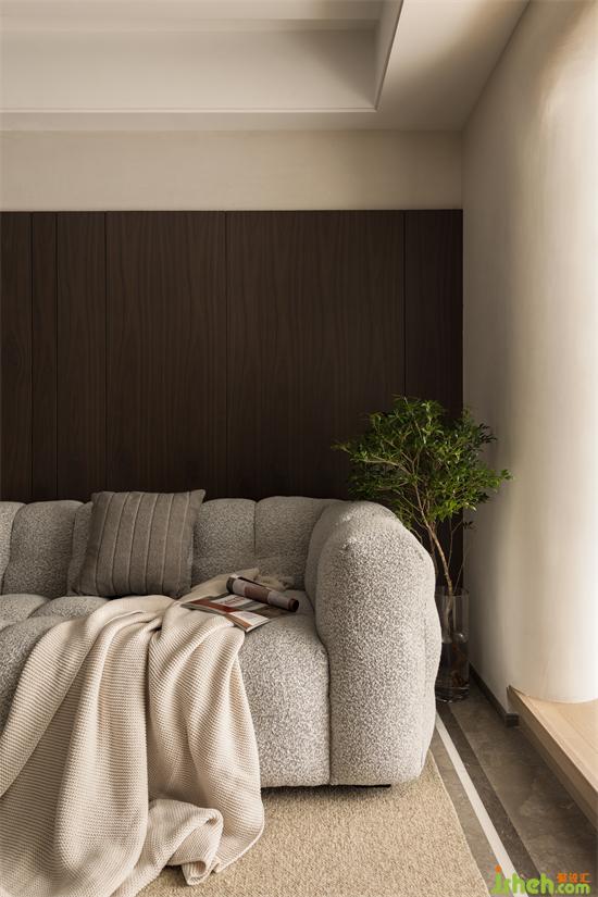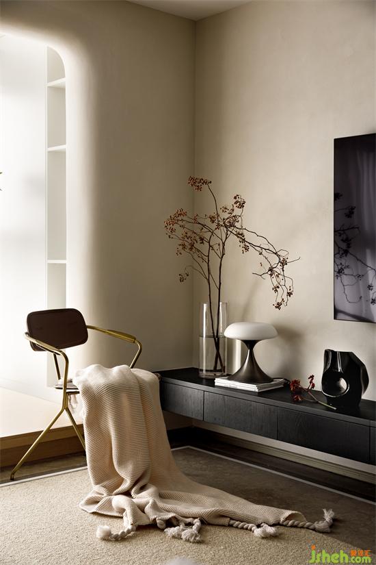 “居所”是私人的生活美感所在,點到為止的設計,杭州和寧文華府裝修設計且得空間的靜謐與柔和。陽臺與客廳水平面上的高度差,滿足女業(yè)主對地臺氛圍感的期許。