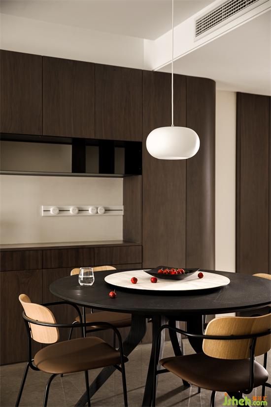 協(xié)調(diào)比例的均衡給予人的感知,杭州和寧文華府裝修設(shè)計希望功能物件能以更輕松、趣味的體態(tài)來補充空間需求,一整面衣柜以'斷層'的形式呈現(xiàn),既滿足生活的實用性,又保持著空間的松弛感。