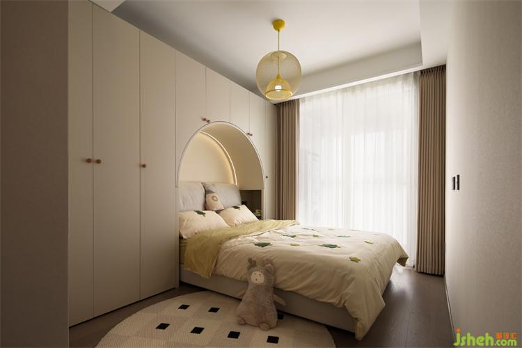 高收納需求與床頭背景造型結(jié)合,杭州和寧文華府裝修設(shè)計打造兒童房的專屬趣味,在元素上的細化斟酌,期待給予孩子更多的關(guān)照與呵護。