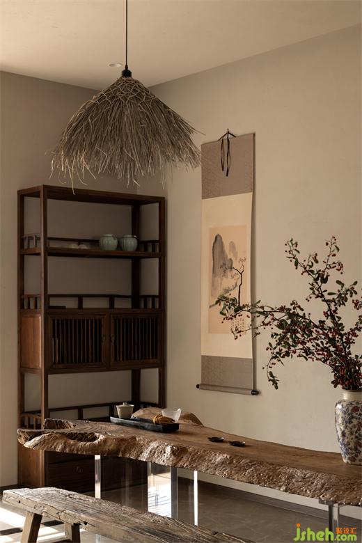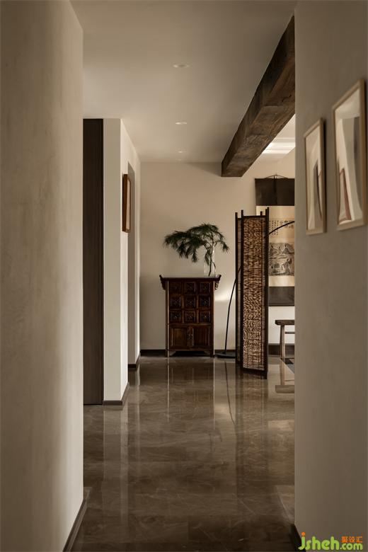 現(xiàn)代美學(xué)與古典元素的結(jié)合,自然造物與新型材料的碰撞,杭州朗譽(yù)府精裝房改造在空間里可見智人與自然演化的人文周邊??创澜绲慕嵌扰c自我的思考,與時間回溯形成自然連接,稻草漆輔以粗狂的原始感,墻頂一體的米黃色調(diào),大地色系的家具選品,以柜體為空間重色控制整體氛圍,然后感受人與空間的精神鏈接。