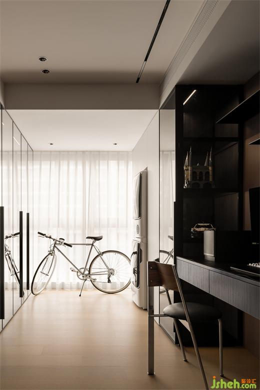 集結(jié)多種功能屬性——衣帽間、書(shū)房、洗衣區(qū)于同一空間內(nèi)妥善安排,整合空間的利用率與便利性,且將之以相對(duì)開(kāi)放的姿態(tài)呈現(xiàn),雙移門(mén)得以應(yīng)對(duì)不同情景下的空間需求,空間互通性與獨(dú)立性兼具。柜門(mén)以鏡面手法擴(kuò)容視覺(jué)空間,杭州海潮雅園裝修設(shè)計(jì)在保證充足的儲(chǔ)物空間下協(xié)調(diào)其帶有的體量,平衡家居功能與空間體感的雙重需求。