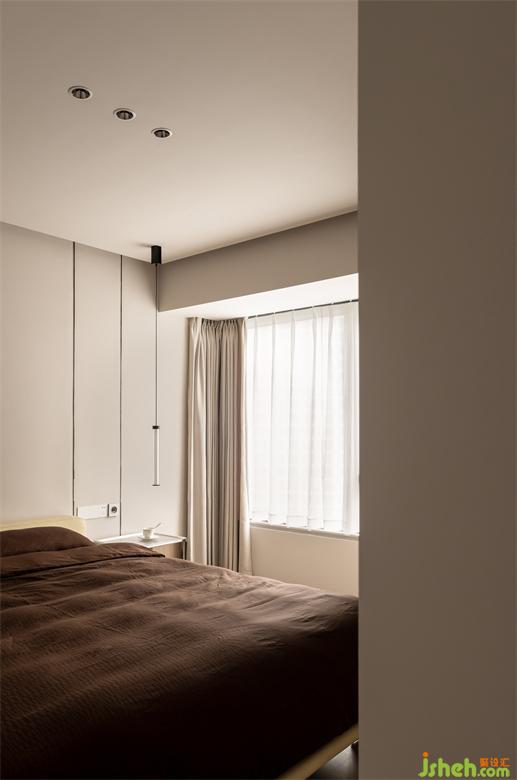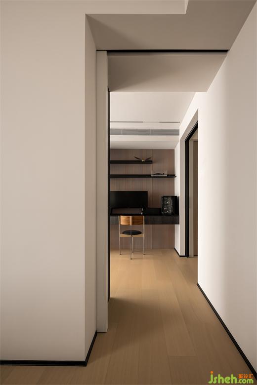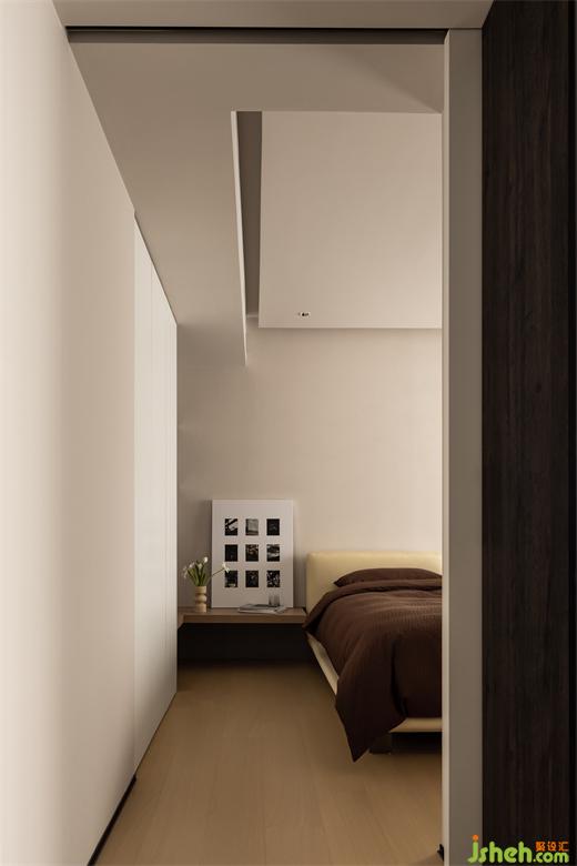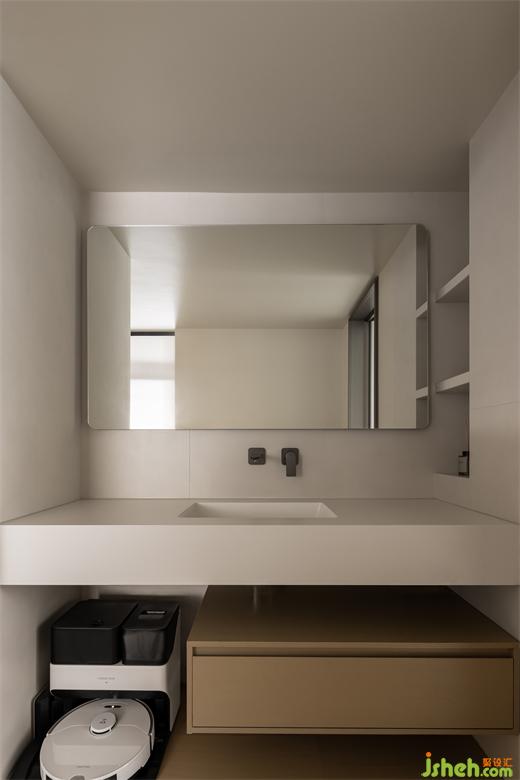 Preserve only one bathroom of home space, separate the bathroom from the master bedroom, and rearrange its functions to create a pure sleeping area. The gentle colors and suspended ceiling collide with materials, outline lines and blocks, and not only meet the needs of daily life, but also create a space atmosphere.