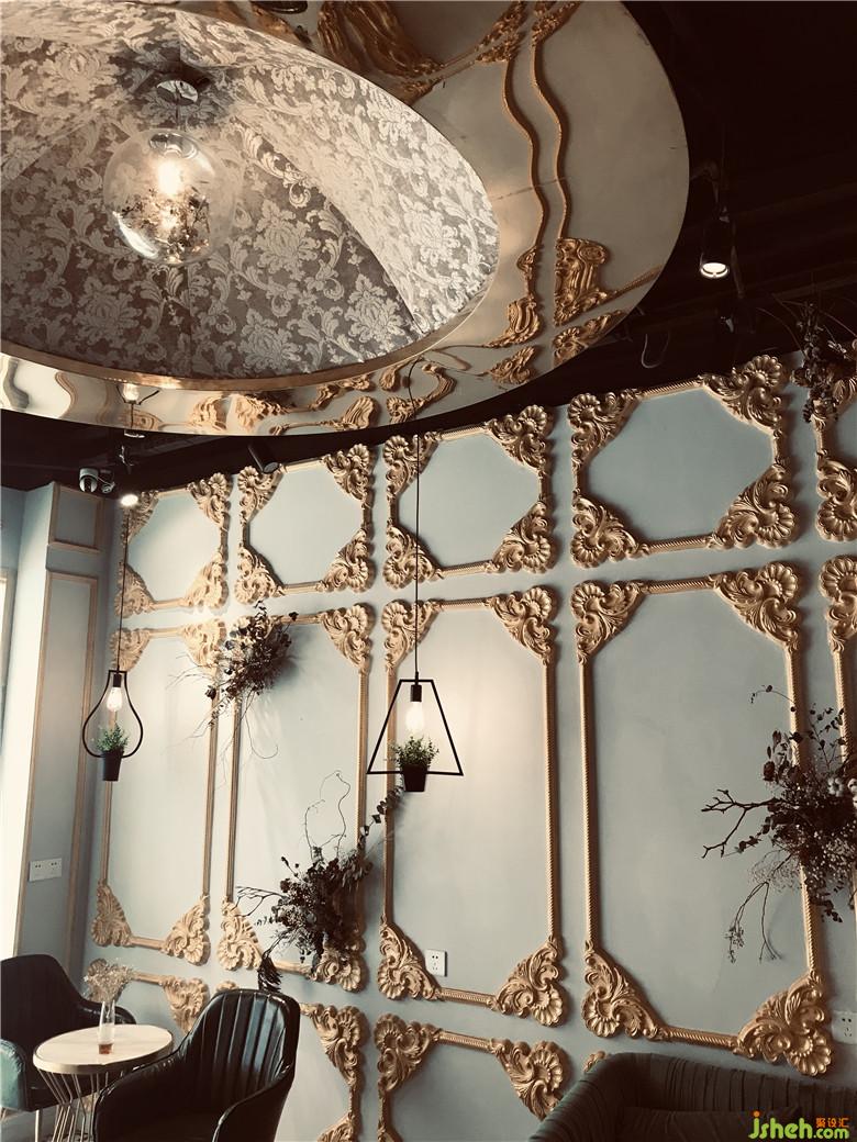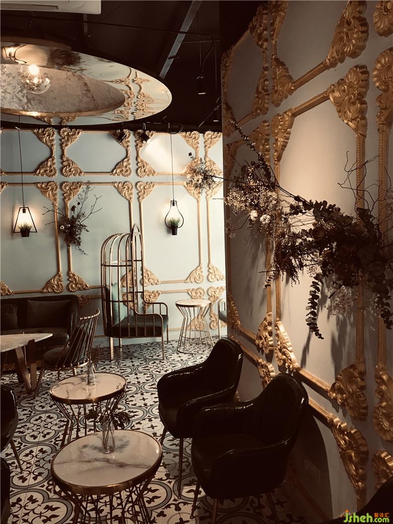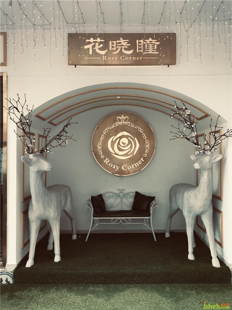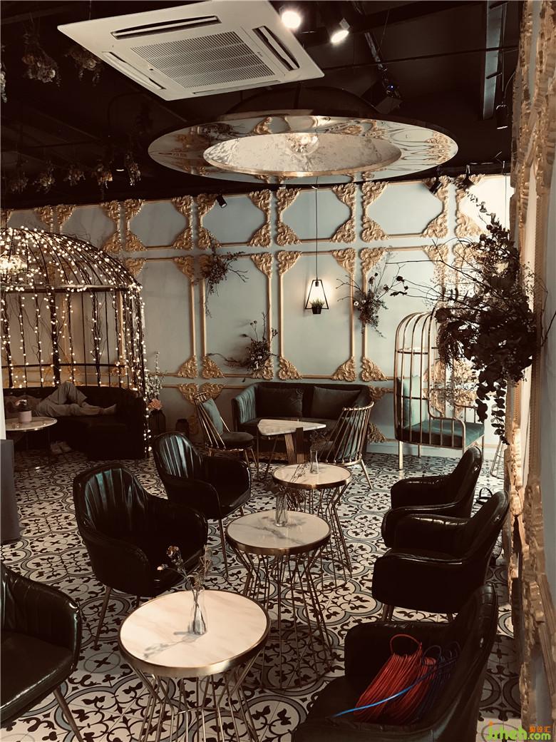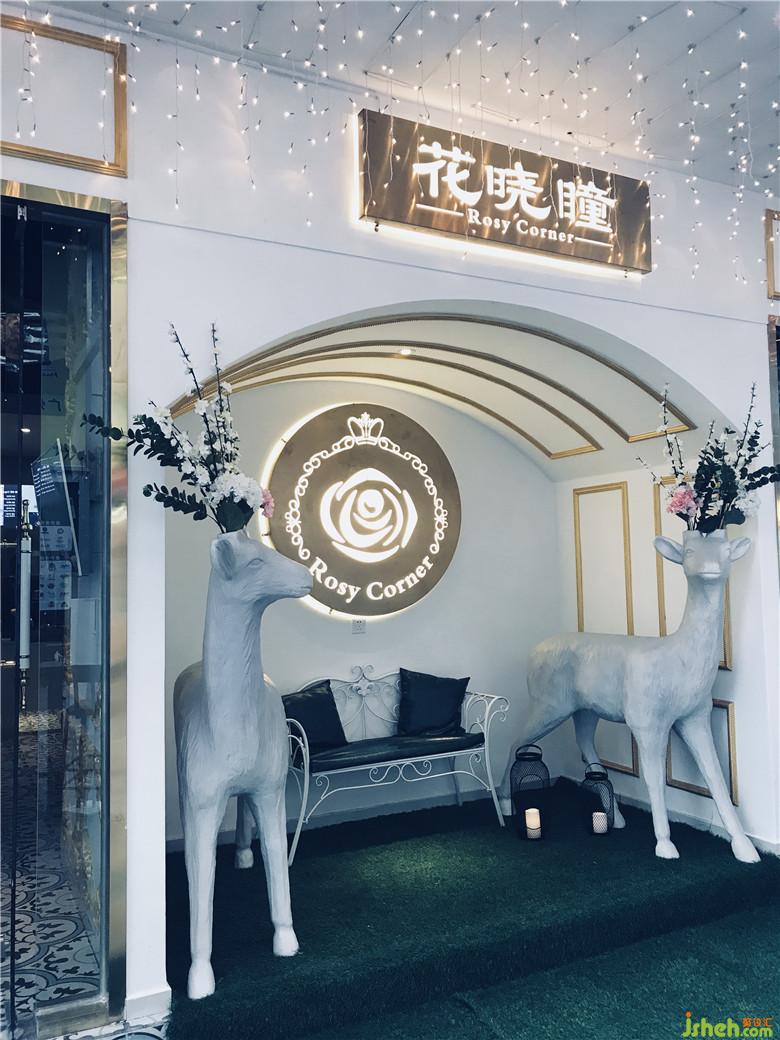 玄關(guān)進(jìn)門處中間有白鹿為裝飾品,鮮花小鹿指引您進(jìn)入另外的夢幻仙境。一進(jìn)大堂休閑區(qū),第一眼會給天花的圓頂造型深深吸引了,這是本飲品店的形象造型。