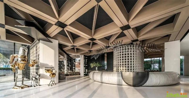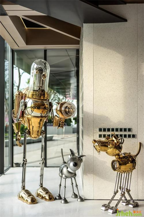 "藝術(shù)屬于古老的世界,科學(xué)屬于現(xiàn)代的世界。"設(shè)計(jì)師將藝術(shù)文化與潮流科技相融合,入口前廳以比利時(shí)藝術(shù)家stephane Halleux的蒸汽朋克藝術(shù)玩偶為序,融古匯今,拉開(kāi)一場(chǎng)科技與藝術(shù)交流碰撞的感觀盛宴。