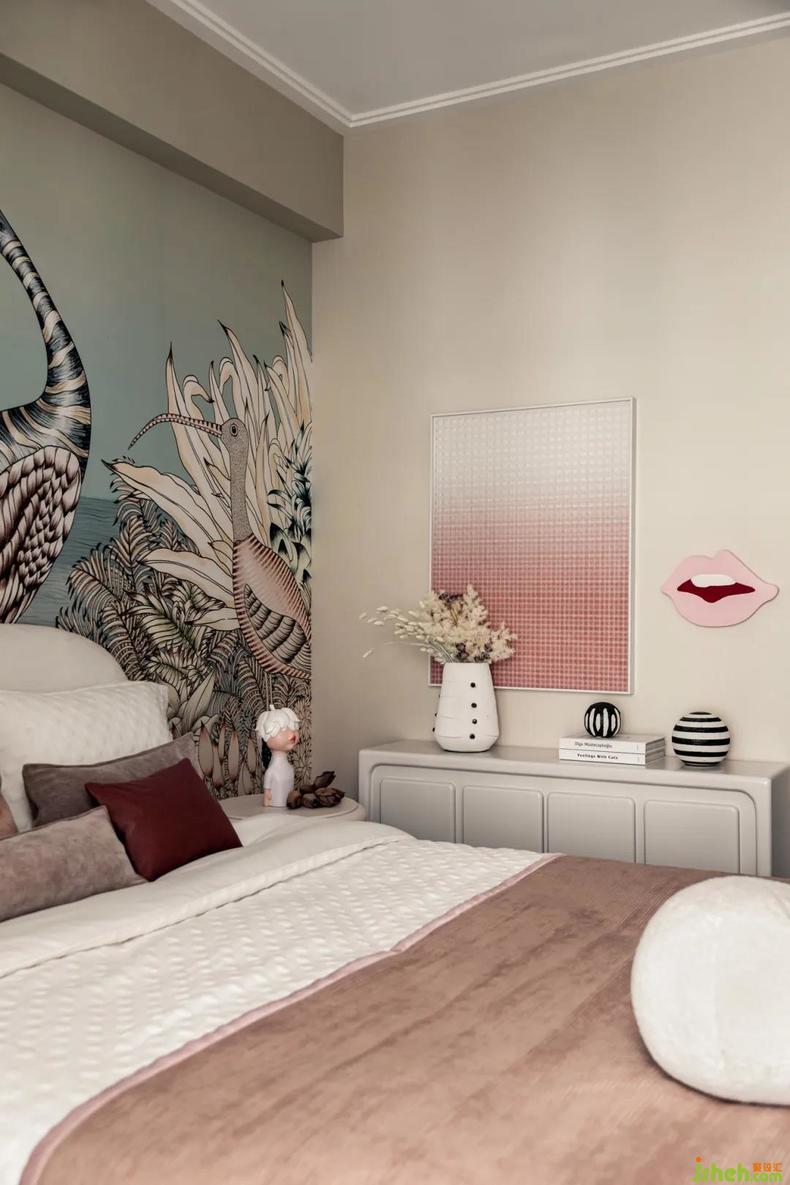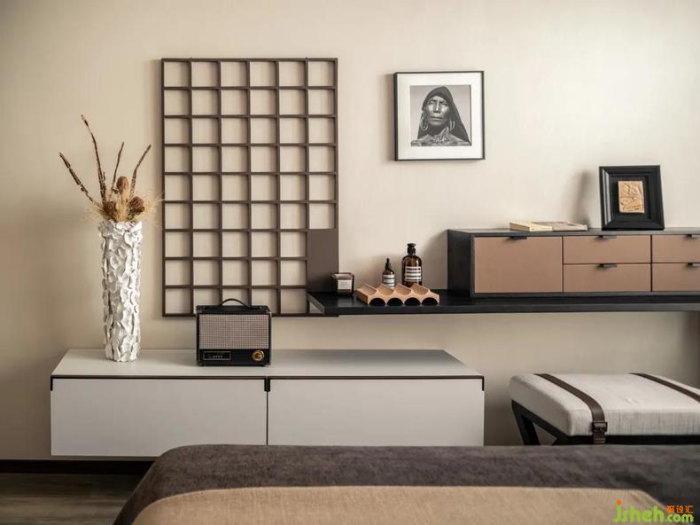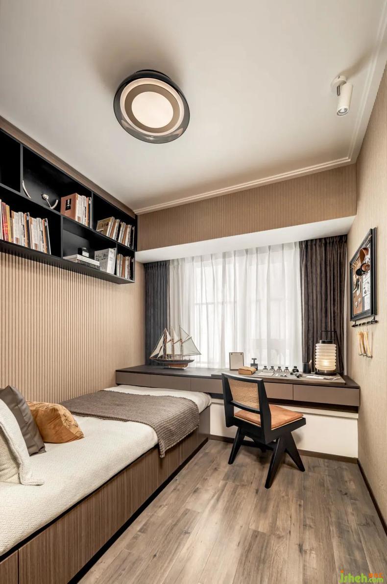 松軟的布藝、細(xì)膩的木質(zhì),層層疊疊,凸顯出側(cè)臥精致的生活品味,陽光從絲質(zhì)的窗簾縫隙中滲透而下,于此,靜享安然自在的片刻時光。