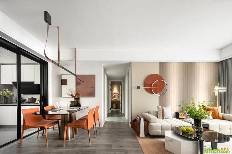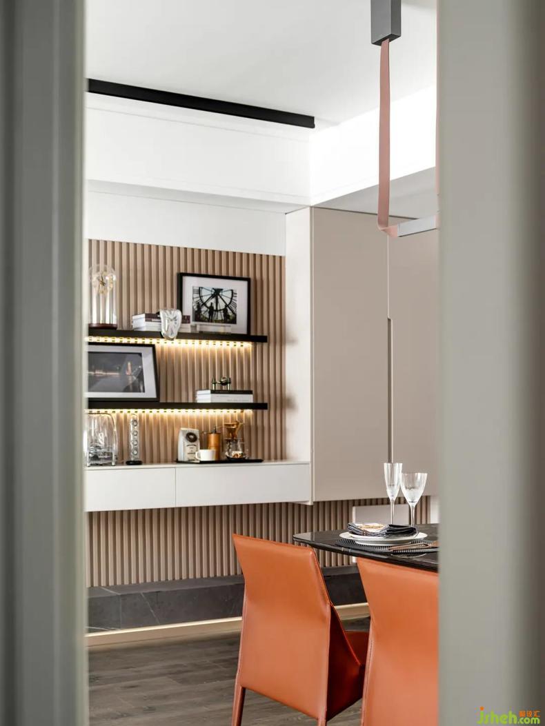 在一片淡雅的基調(diào)中,各種配飾的組合營(yíng)造溫馨浪漫的生活場(chǎng)景樣板房設(shè)計(jì)。開放式餐廳銜接著廚房和客廳,皮制的餐椅與玻璃的餐桌臺(tái)面融合得恰到好處,暖調(diào)的分布透露著獨(dú)立而又互相連接,是色彩與材質(zhì)的完美演繹,是觸感與觀感的雙重碰撞。