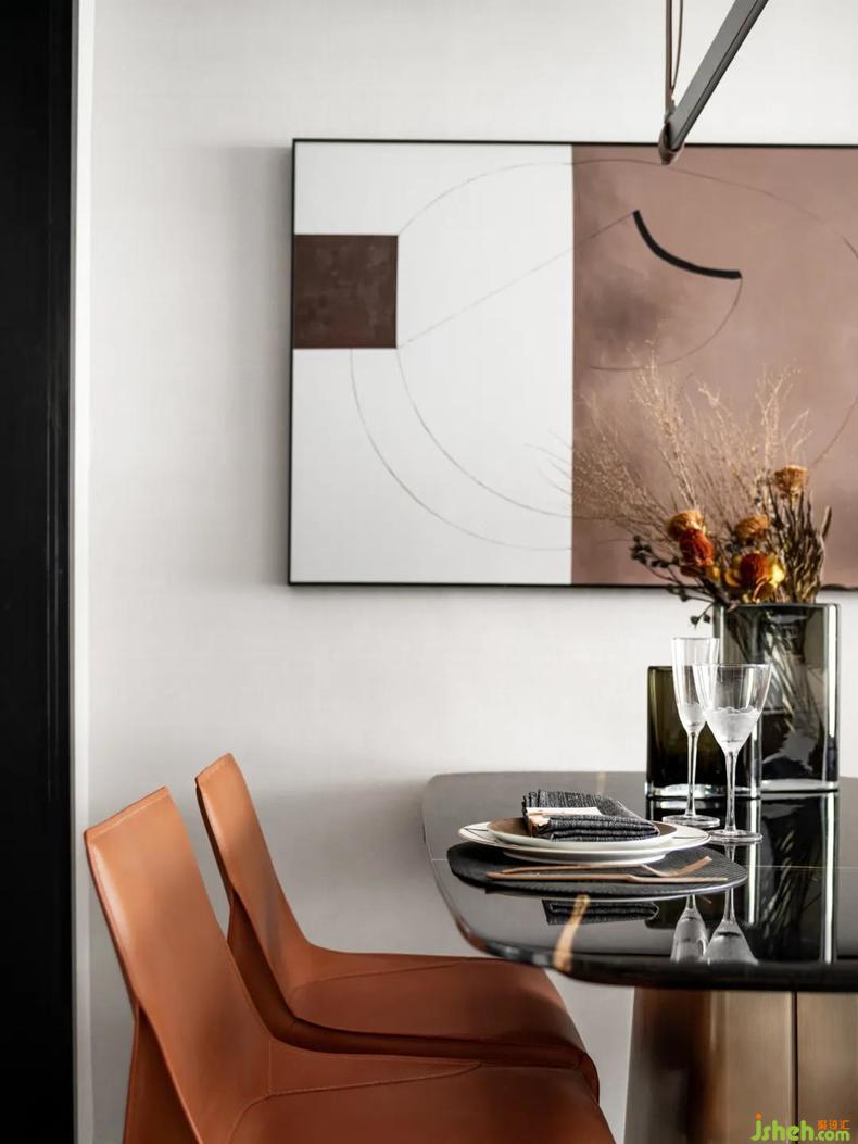 暖棕色總令人想起沉穩(wěn)的大地,它們與木質(zhì)的背景墻仿佛一同承擔(dān)著自然中土壤的角色,給予家生長(zhǎng)的力量,營(yíng)造溫暖而又充滿藝術(shù)氣質(zhì)和文化感的氛圍。