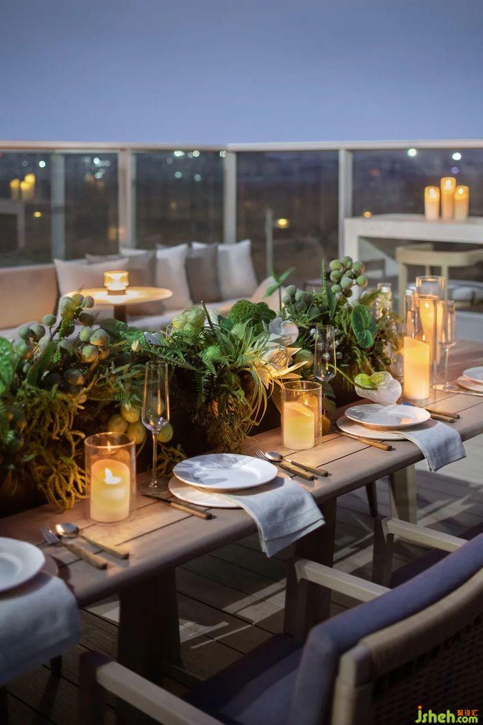 會所設(shè)計頂層是以“樂”為陣營的城市營地。星空露營、戶外聚餐、吧臺、卡座等等功能都出現(xiàn)在露臺,享受更多體驗方式更多樂趣。在這里可以把平時失去的自然美好都找回來,浪漫夏夜里,告別城市的喧鬧與浮躁,親近星空的靜謐與美好。