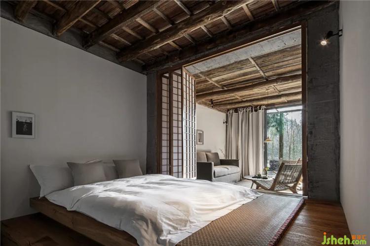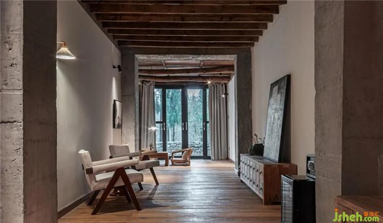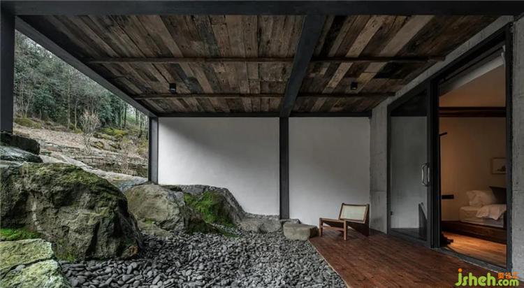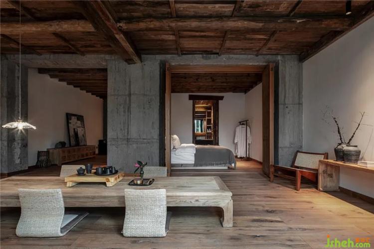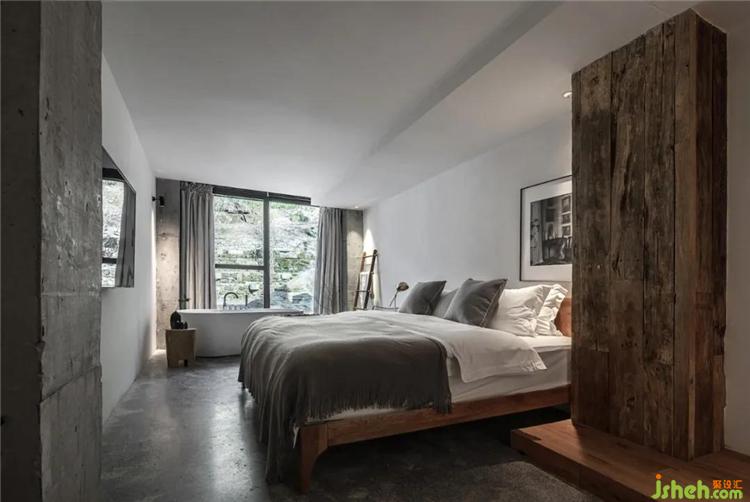 挑高的空間架構(gòu)中,通過天花與墻面連續(xù)的設(shè)計,塑造出空間整體風格的延伸性,各個區(qū)域直接的轉(zhuǎn)換自然而流暢,從而打破了常規(guī)民宿空間的形制特點與界分感,于簡單中加以微妙的轉(zhuǎn)折,呈現(xiàn)出空間簡凈大方的當代氣息。