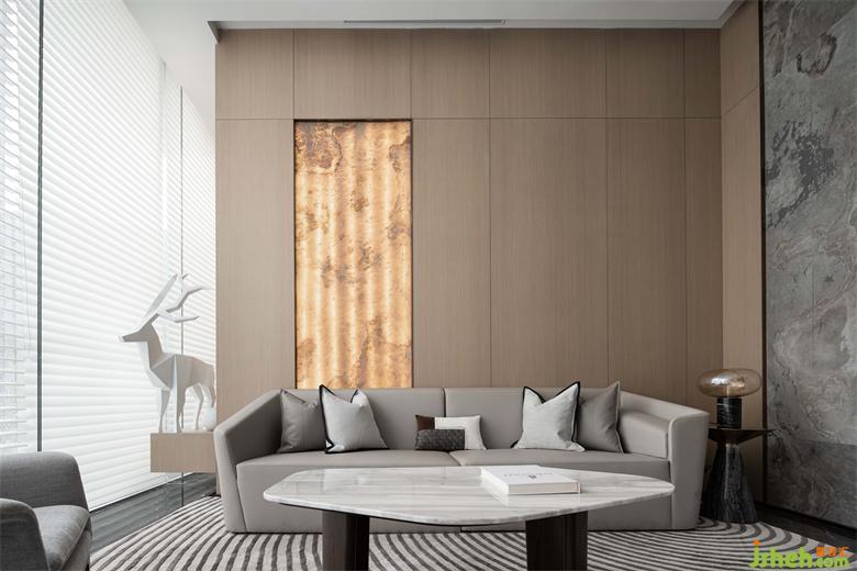 以寧靜美好,且富有獨(dú)特設(shè)計(jì)感的造型,售樓處設(shè)計(jì)賦予體驗(yàn)館美好的視覺感受。透光石與木飾面材質(zhì)碰撞,曲線與直線交融,置頂?shù)臅衽c小圓桌呼應(yīng),奠定空間的品質(zhì)感。