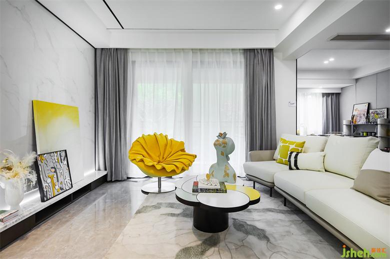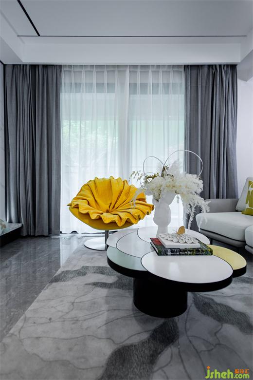 會(huì)客廳的時(shí)尚裝飾中帶著柔和與靈動(dòng),幾何圖形的地毯與光潔的地面相映襯。洋房設(shè)計(jì)素雅潔白的大塊顏色明快簡(jiǎn)潔,力量中融合了一絲典雅的氣息。
