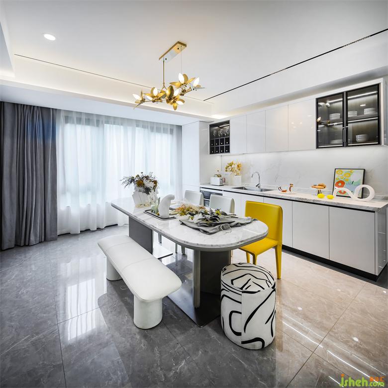 打造暢快且能全家互動(dòng)的西廚空間,保留能隔絕油煙的中廚。在亮麗的色彩點(diǎn)綴間,拋灑一日的凡塵。圍繞都市人居的美好生活情境,創(chuàng)意的細(xì)節(jié)擺件與清新的自然植物調(diào)和出有溫度與情感的空間圖景。
