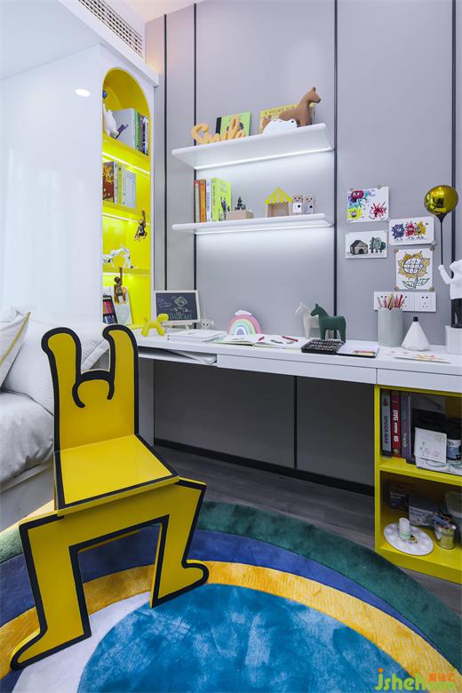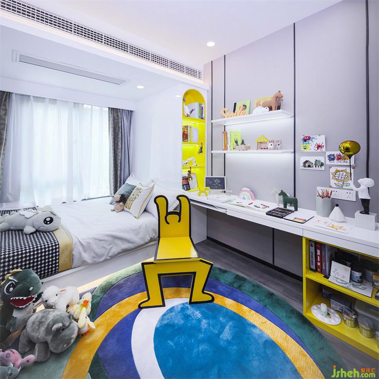 兒童房以男孩的涂鴉為靈感,提取今年潘通流行色,以黃色灰色為主傳遞細(xì)膩的質(zhì)感,給予視覺(jué)沖擊,通過(guò)對(duì)線條與色塊的巧妙應(yīng)用營(yíng)造出穩(wěn)定、協(xié)調(diào)、溫馨的兒童空間感受,給予她們一個(gè)快樂(lè)的童年.