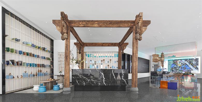 售房部設(shè)計(jì)將整個(gè)室內(nèi)打造成新舊文化交疊的潮玩圣地。榫卯結(jié)構(gòu)的物件的巧妙展現(xiàn),與能透影的玻璃制品的交相呼應(yīng),超脫碰撞的時(shí)光感在這里油然而生。多元潮流的風(fēng)格猶如時(shí)光穿梭一般,瞬間進(jìn)入潮酷新時(shí)代,新舊的無(wú)縫交替給人眼前一亮的新奇體驗(yàn)。