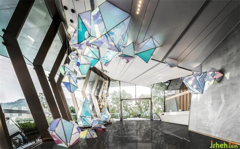 每一處細節(jié)都以實現(xiàn)優(yōu)質(zhì)生活為前提。售樓部建筑外形宛若鑲嵌在山體的水晶寶石,依附于寶石水晶外形從建筑外觀到室內(nèi)都采用點線面的分割方式,不但注重精美的現(xiàn)代設計細節(jié),更注重觀覽者在空間內(nèi)的舒適度。