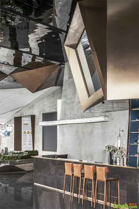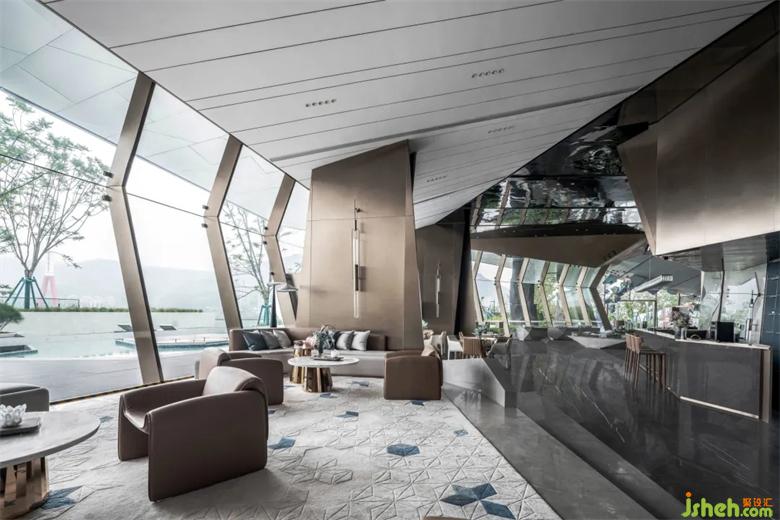 雍江上境云端會客廳,座落于重慶第二大城市萬州,根據(jù)融創(chuàng)全新的體系主張,聯(lián)合海力設計共同推出了以“水晶寶石”為元素,延續(xù)建筑外形,將宛若鑲嵌在山體的水晶寶石的設計語言,在室內(nèi)設計引入“美食咖啡吧氛圍特色”的現(xiàn)代輕奢風格售樓部的概念,去售樓處化,注重生活理念的打造和生活方式的優(yōu)化,將之締造為時尚與現(xiàn)代雅奢兼?zhèn)涞亩际许椖俊?nbsp;
