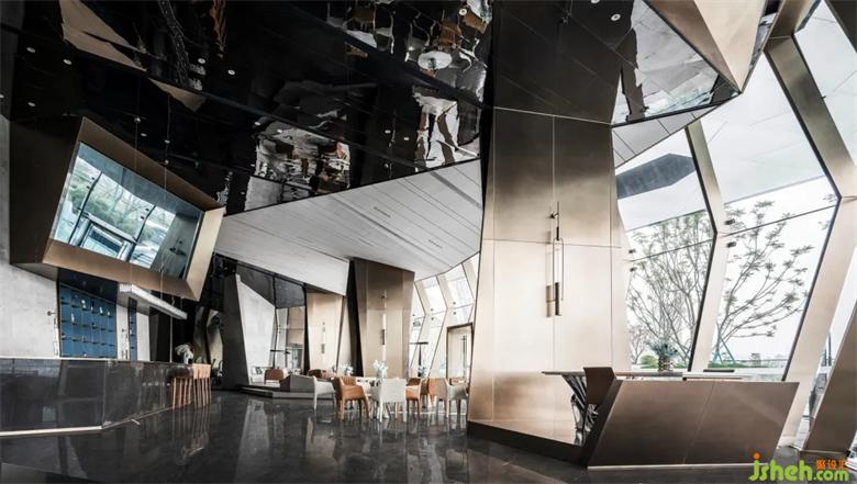 入口處的炫彩是序曲,在模型區(qū)形成宏大的音域,建筑結(jié)構(gòu)高挑向上,予人強烈的反差感和視覺沖擊力。會所設計師從寶石的切面中獲取靈感,將結(jié)構(gòu)墻進行分割,勾勒出空間的面。