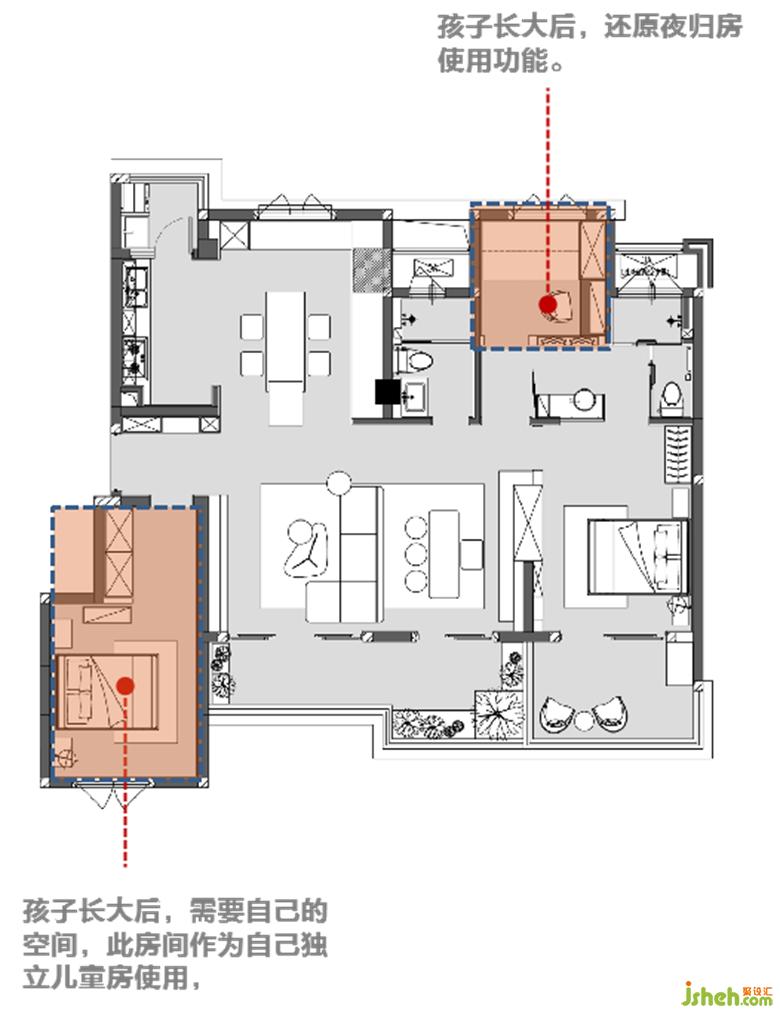 破常規(guī),讓光照進(jìn)生活,延續(xù)書香門第,是這套戶型的主題。