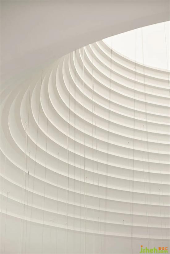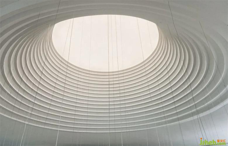 在項(xiàng)目最中心的位置,利用藝術(shù)的處理,重慶售樓處設(shè)計(jì)制作了如外太空一般,神秘且夢(mèng)幻的“穹頂”,創(chuàng)造宛如天然成形的室內(nèi)開口,導(dǎo)引不同時(shí)間點(diǎn)的自然光入室、滲入空間深處。同時(shí)利用人造光的輔助,創(chuàng)造外太空一般的神秘感。