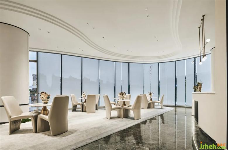 280度絕佳的景觀面,是需要給重要的人欣賞,將室外的美景,搬入室內(nèi)。重慶售樓處設(shè)計(jì)營造整體統(tǒng)一的目光聚焦再現(xiàn),賦予其和建筑主體相似的疊加層次感。同時(shí)也將現(xiàn)代設(shè)計(jì)穿插構(gòu)筑在充滿蓬勃活力的自然下,妙趣橫生。