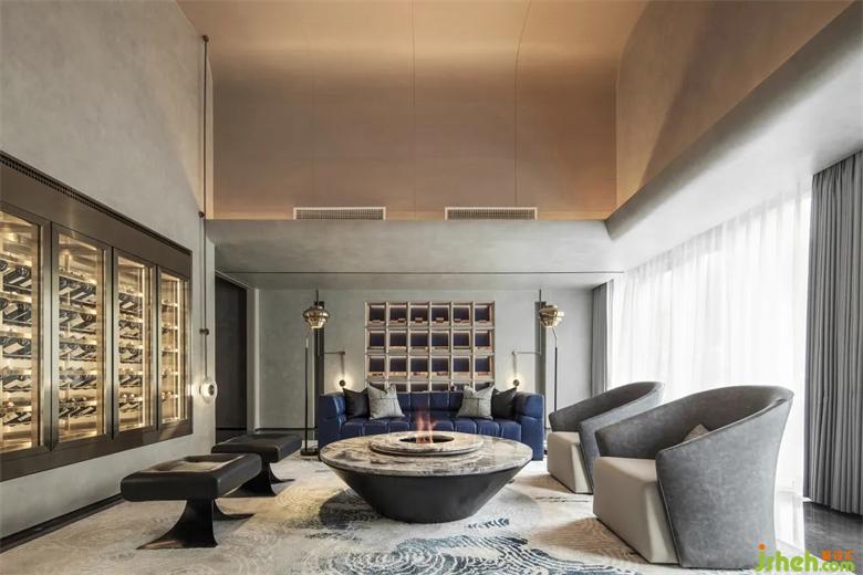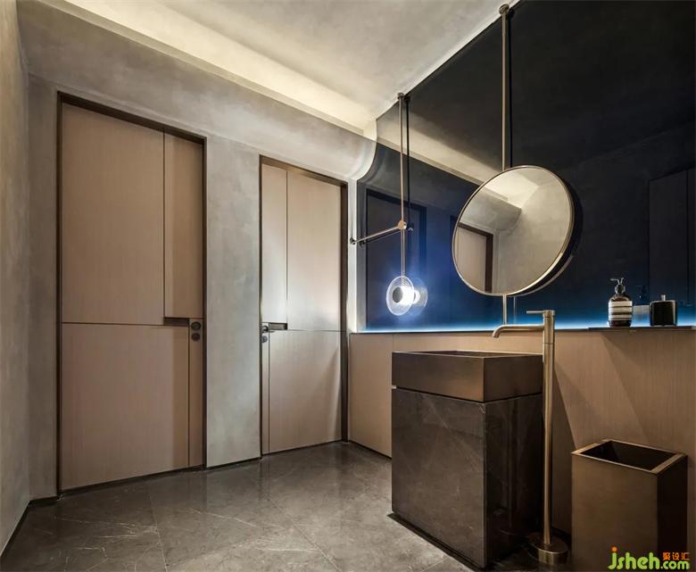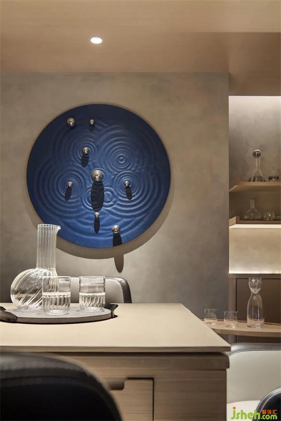 會(huì)所設(shè)計(jì)扎染藍(lán)也延續(xù)到了盥洗區(qū),傳遞扎染與海的意境,老物新法,現(xiàn)代藝術(shù)的手法處理,山水文化的精髓貫穿于室內(nèi)設(shè)計(jì)中。