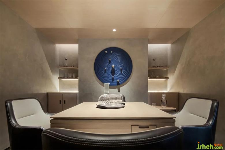 藏在空間內(nèi)的棋牌室,讓綜合空間互動(dòng)性更強(qiáng)。會(huì)所設(shè)計(jì)體態(tài)的統(tǒng)一結(jié)合,配以一抹藍(lán)的點(diǎn)綴,讓整個(gè)空間厚重又獨(dú)具趣味。