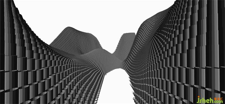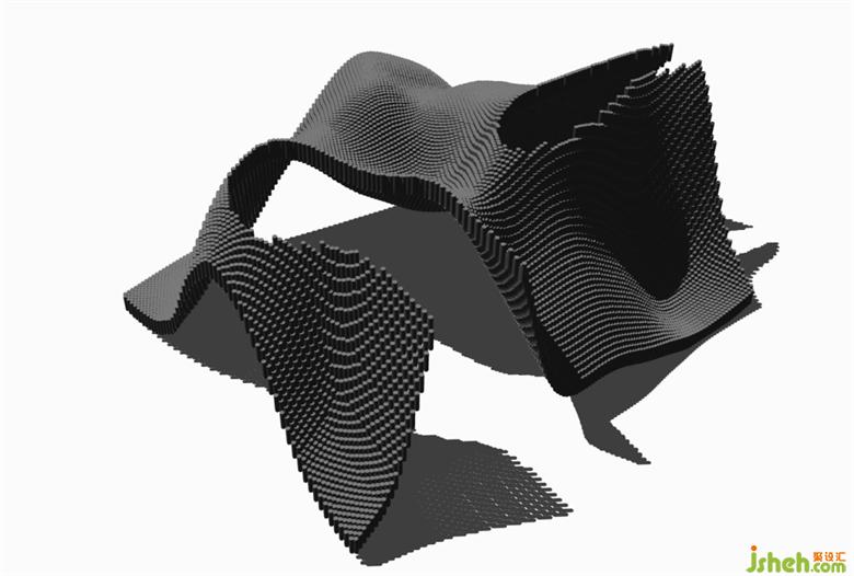 平面似飄零破碎的紙張,而轉到三維來看同樣是一個被抽離一半的空間;