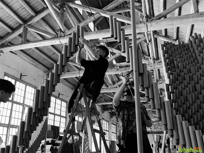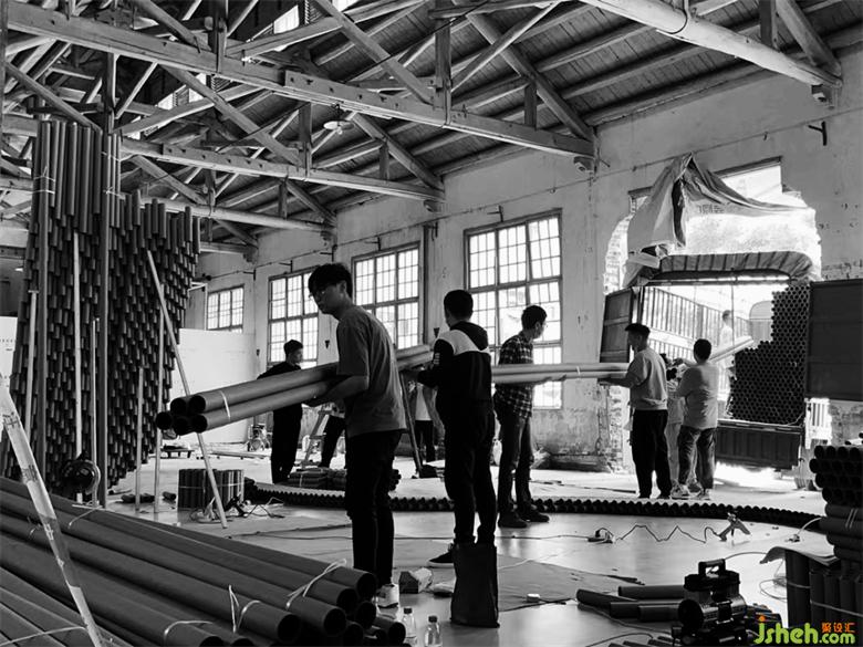 因為場地的變化,海力設計師現(xiàn)場調整設計圖紙,利用現(xiàn)場可用環(huán)境,對設計在保持原有的邏輯下進行可行性的調整,最大限度的對作品內含進行了彰顯。