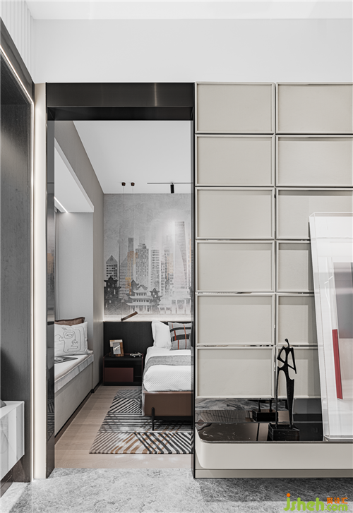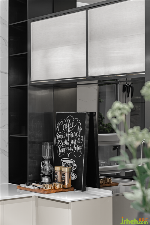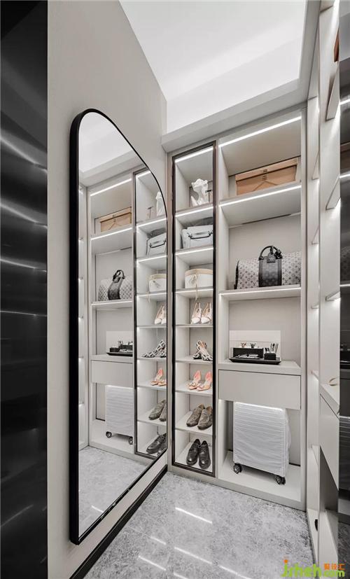 空間色調(diào)在儲(chǔ)物間得到延續(xù),陳列組合的設(shè)計(jì)手法,將“品味”與“生活”于鏡中一同展示出來。