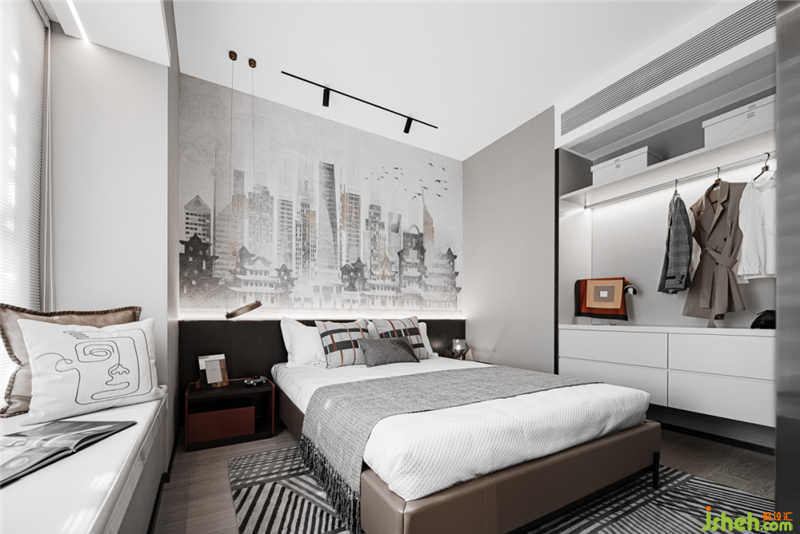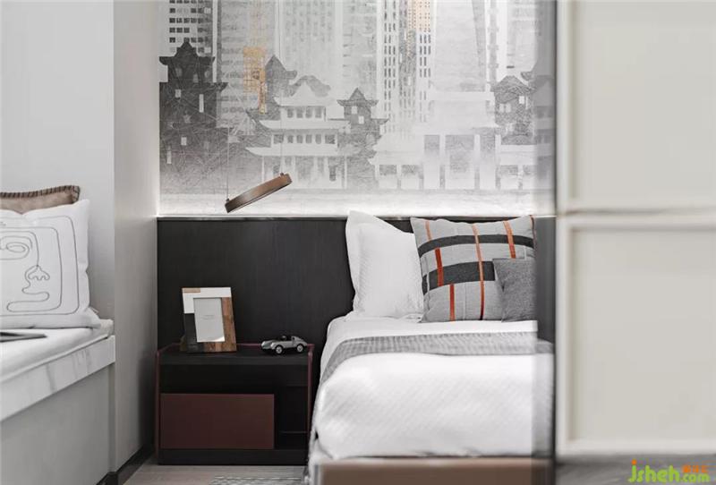 空間簡凝,不多假飾,低飽和度的色彩、簡單的紋理、搭配抽象意境的城市剪影 ,北京樣板房設(shè)計(jì)一切陳設(shè)落得妥當(dāng),只為無限拉近人與生活、與自然的距離。