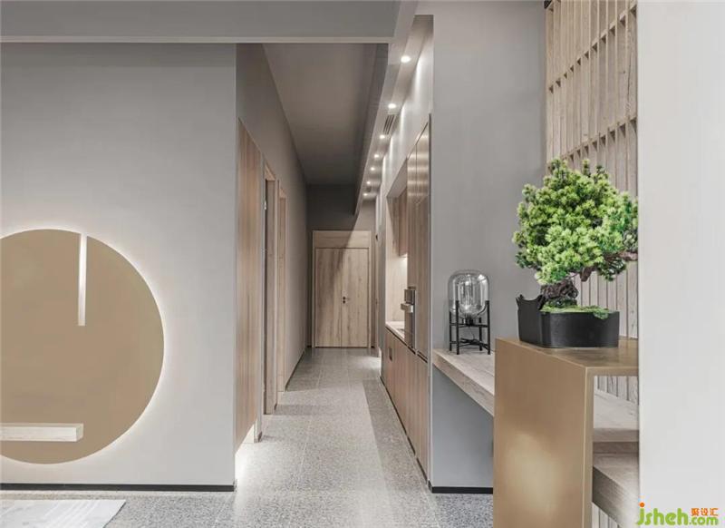 空間中的墻面與天花使用了柔和的灰色調(diào),不過于明亮也不過于深沉,木紋也是自然肌理的真實(shí)表達(dá)。只為了不引起情緒的波瀾,希望走入空間中的人內(nèi)心能足夠平靜放松。