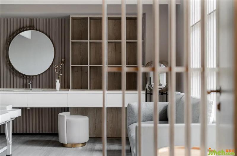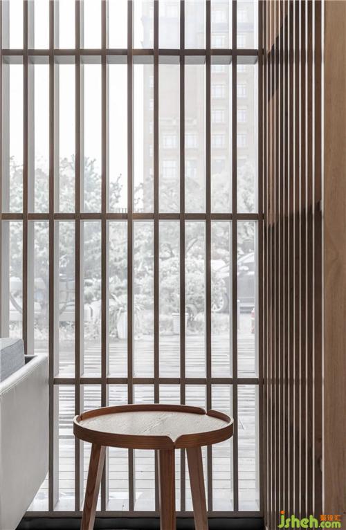 格柵界定了空間范圍的同時(shí)又讓視線得以延展,室外的景色因此蒙上了一層濾鏡,上海會(huì)所設(shè)計(jì)進(jìn)入室內(nèi)的光線也變的柔和。進(jìn)而模糊了室內(nèi)與室外的界限,讓空間變得不再棱角分明。