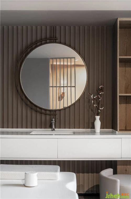 衛(wèi)生間的鏡面對(duì)應(yīng)空間景觀節(jié)點(diǎn),將室外景觀直接引入小空間上海會(huì)所設(shè)計(jì)。適當(dāng)“借景”帶來更加豐富的空間體驗(yàn)。