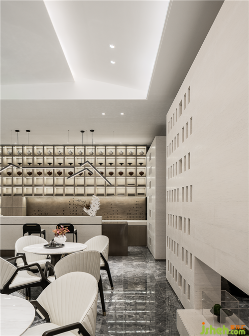 米白色是一種饒有趣味的顏色,朦朧又清透,優(yōu)雅而清新。桌凳茶幾之間,每一處飾物,都呈現(xiàn)出克制的元素碰撞與錯落之美。